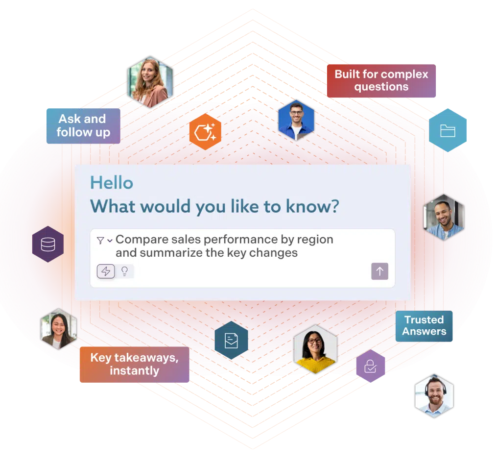 Ask follow-up questions to uncover more context, related insights, and the reasoning behind every response—all grounded in your company’s certified knowledge.